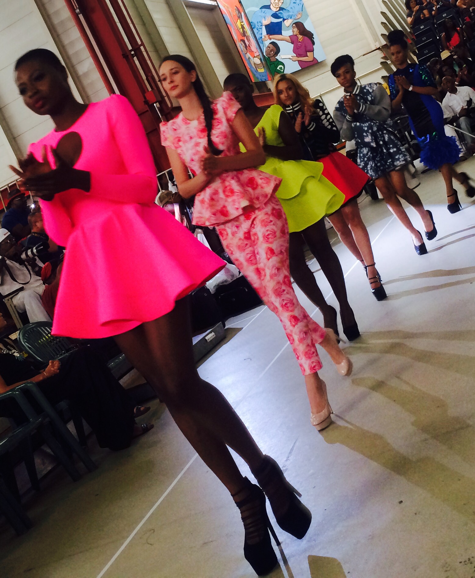 Hot Fuscha, fire orange, sunny yellow and vivid green were amongst an array of bold shades coloring the runway. The cuts, tailoring and designs of the many up-and-coming fashion designers’ pieces were bold, eccentric and classical enough to hold its own weight in the competitive world of high fashion.